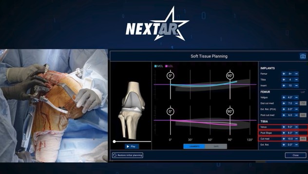 Experience unparalleled real-time 3D analysis of ligament behavior throughout the full range of motion, providing unique and more detailed insights than the 2D gap analysis offered by outdated navigation systems and more expensive robotic platforms. Enhanced by augmented reality, NextAR Knee empowers surgeons with data-driven decision-making tailored to each patient’s unique anatomy, redefining ligament balancing in knee arthroplasty.