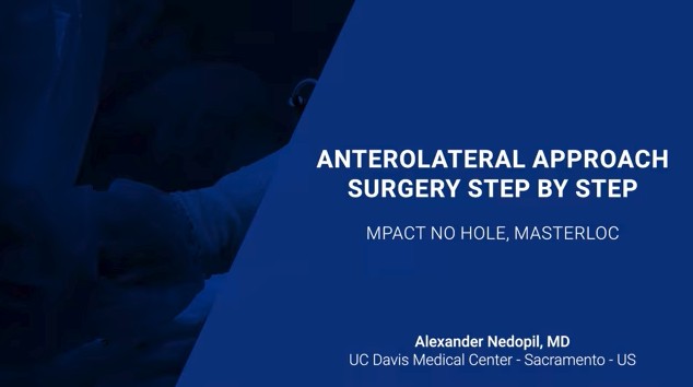 Discover a step-by-step live surgery performed by Dr. Nedopil utilizing the Anterolateral approach featuring the Masterloc femoral stem and the Mpact acetabular cup.